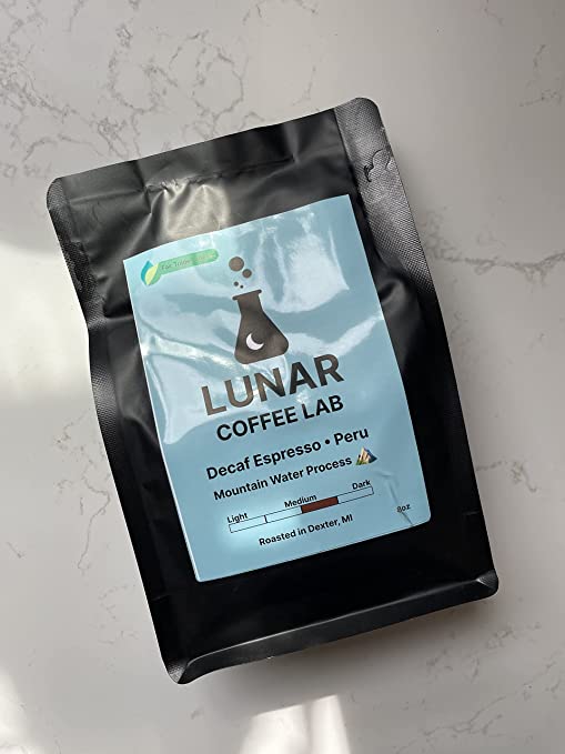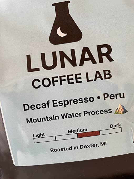 Lunar Coffee Lab Organic Decaf Espresso Single Origin Coffee Peru - Naturally Mountain Water Processed - Medium Dark Roast (8oz)