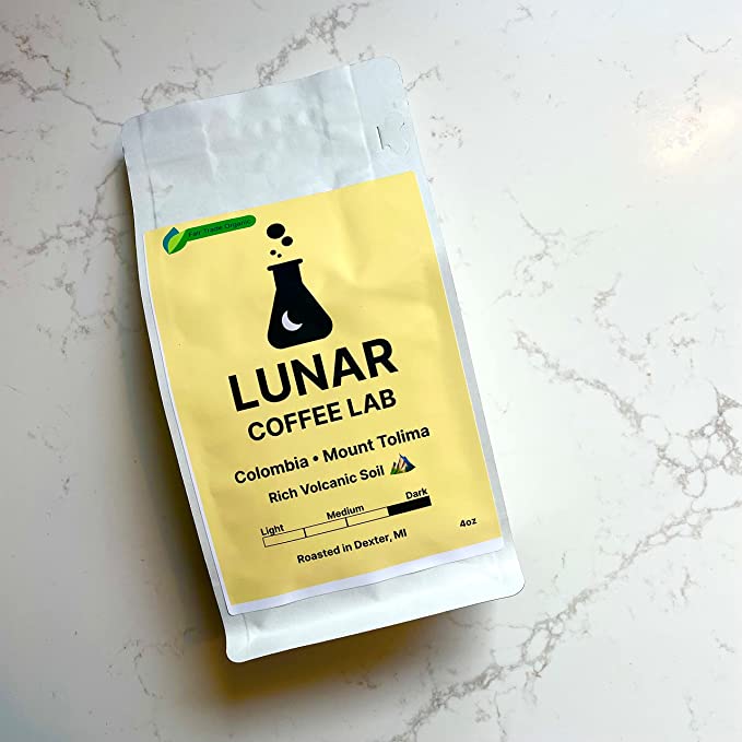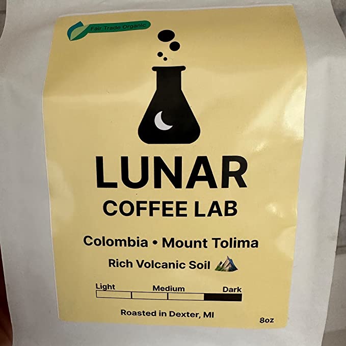 Lunar Coffee Lab Colombia Organic Coffee Dark Roast - Volcanic Soil Grown at Mount Tolima - Fair Trade Dark Roast Coffee or Espresso (Whole Bean)