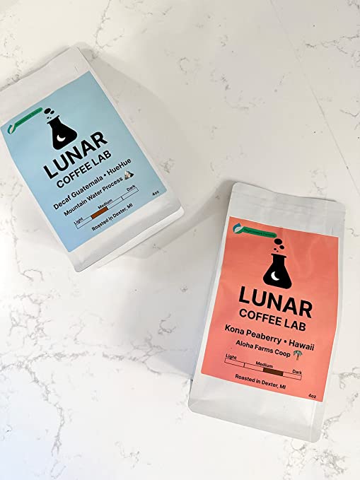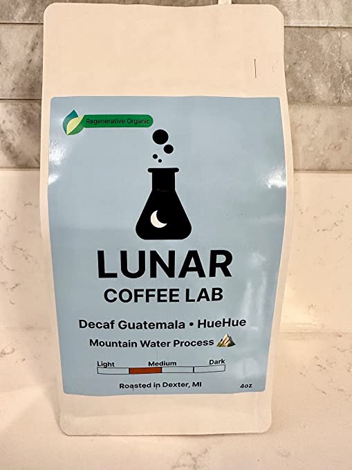 Lunar Coffee Lab Decaf Guatemala Organic Coffee - Medium Light Roast Naturally Decaffeinated - Mountain Water Process Decaf - Regenerative Organic Grown (Whole Bean) (4oz)