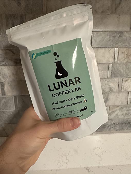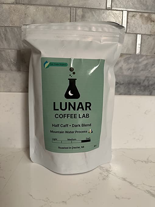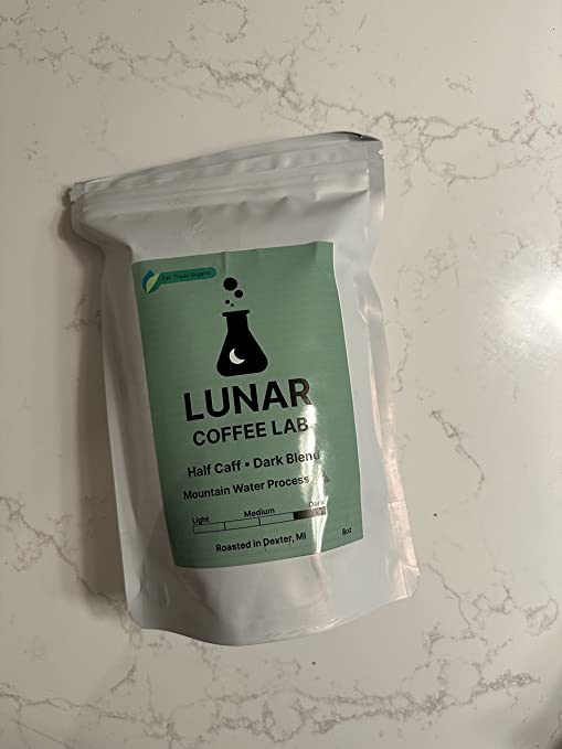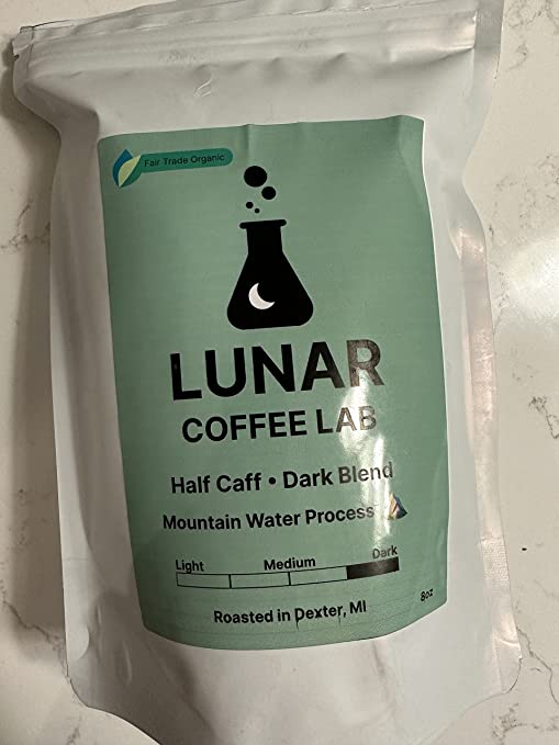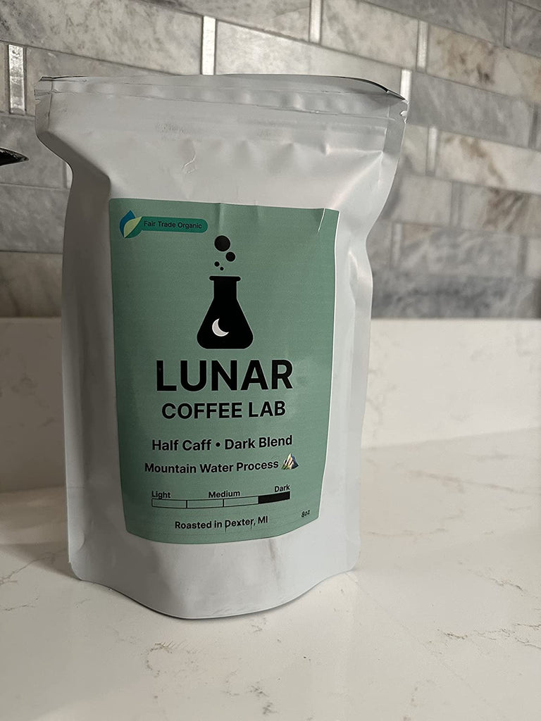 Lunar Coffee Lab Half Caff Organic Dark Roast Coffee - Half Decaf Mountain Water Process Guatemala Half Fair Trade Volcanic Colombia - Dark Roast Whole Bean Coffee (8oz)