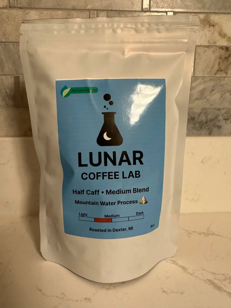 Lower your caffeine level while preserving flavor and health benefits with this delightful medium roast half-caff coffee!