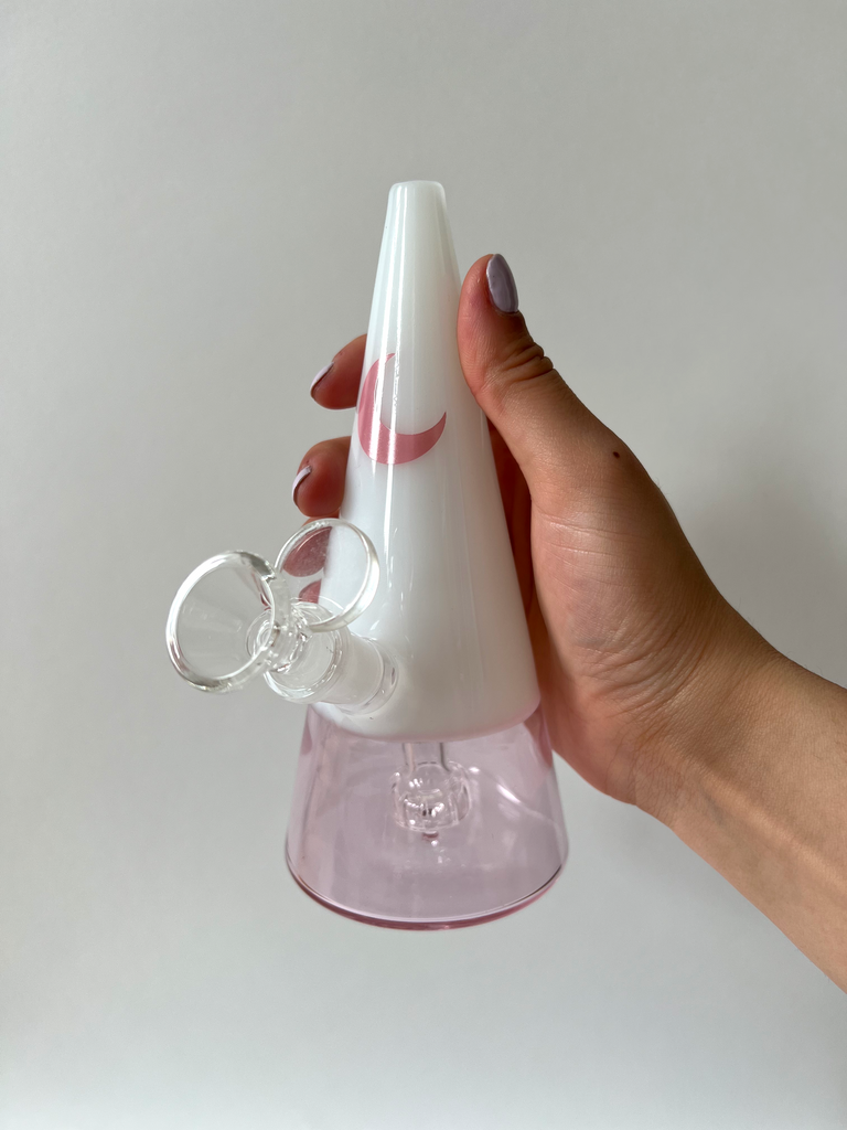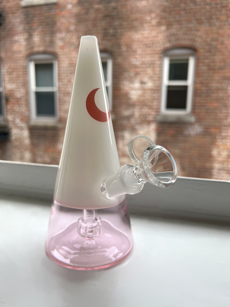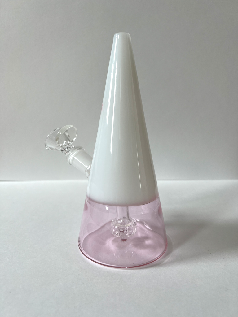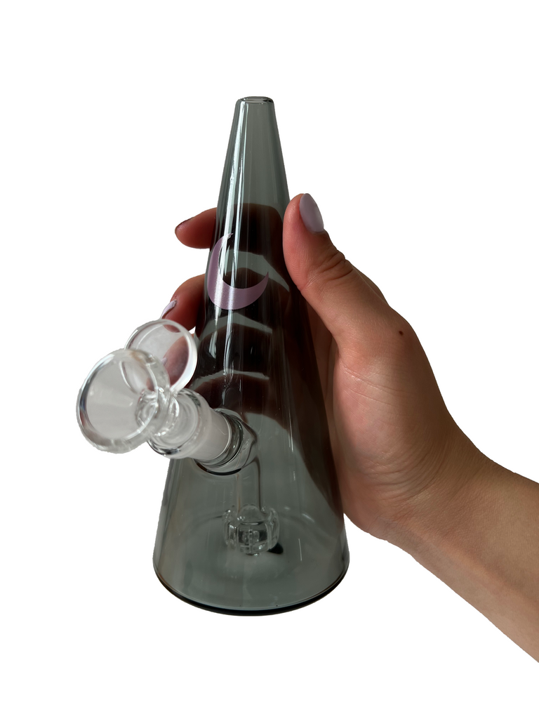Our most requested items is finally here... a bong! Our triangle bong elegantly tapers in from the bottom to the top which not only makes for a vase worthy piece, the change in dimension ensures less smoke escapes between hits and adds velocity to your pulls so you can get a stronger and deeper hit using less of your precious grass 🌱